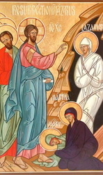 Lazar, pridi ven! Telo umrlega Lazarja je že trohnelo, ko ga je Jezus obudil od mrtvih. Stopil je iz groba, kakor pozneje Jezus, ko ga je ožarila svetloba nebes. Gospodar življenja je povrnil življenje prijatelju, da bi ljudje videli in spoznali vsemogočnost našega Boga, ki poveljuje silam stvarstva – celo smrti. Če je torej vstal Lazar, lahko vstane vsak, ki je deležen Božjega dotika. V mrtvo materijo se naseli moč, ki daje življenje, pred našim rojstvom in po naši smrti. Bog namreč zmore ustvariti življenje kadarkoli in na kakršenkoli način. Pa čeprav je človeški pameti nedoumljivo, kako to naredi. A Stvarnikova volja ni predmet našega razumevanja. Preprosto je in ustvarja iz neizčrpne in trajne ljubezni. Zajema iz niča, da naredi svet in vse, kar biva, otipljivo. Božji glas daje rast življenju. In roka Najvišjega nas vzame, ko smo končali svoje zemeljsko poslanstvo. Pred tem pa nas Bog pogosto kliče, da bi vstali iz groba osebne krivde in storjenega greha. Ne želi, da bi ležali mrtvi v krsti srčne otopelosti in ogrožali lastno rajsko neminljivost. Spodbuja nas, da bi živeli pravično, naravnani Nanj, ki je vir dobrega. Obsiplje nas z neštetimi milostmi, da bi našli pot v smisel. Vedno znova nas kliče po imenu, če mu le znamo prisluhniti, da bi duša ne trohnela v živem telesu, ampak odgovarjala na Božjo govorico z zvestobo. Vstani, Božji otrok, in veseli se življenja, ki ga podarja Večni! Bodi moj! Izročaj se meni, da boš živel! (po: P. Millonig, Zasidran v veri 2)